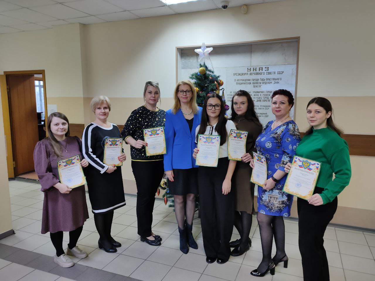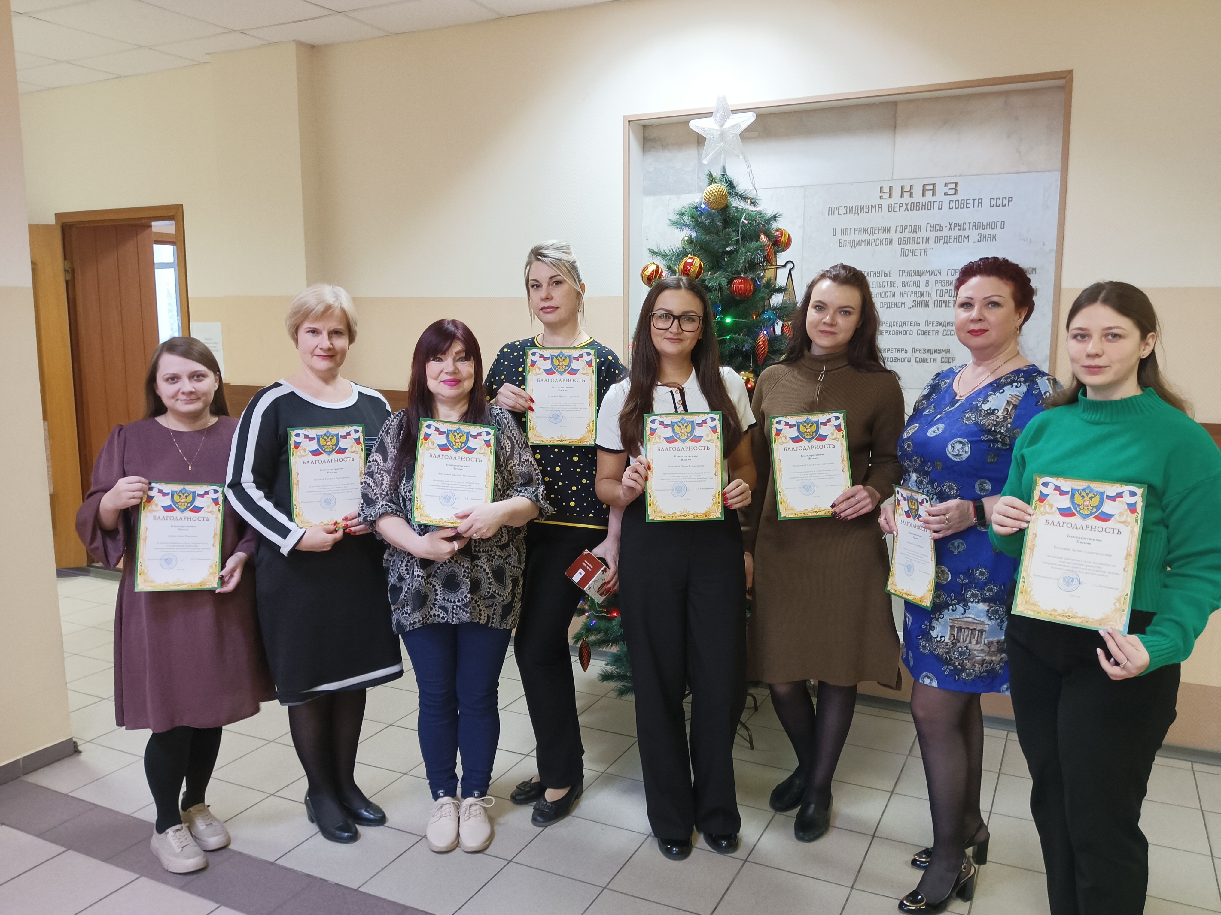 В торжественной обстановке председатель Гусь-Хрустального городского суда Овчинникова Екатерина Евгеньевна поздравила коллектив с наступающими праздниками, пожелала коллегам достигнуть всех поставленных целей в новом 2026 году, а также здоровья, мира, добра и благополучия.С тёплыми словами поздравлений Екатерина Евгеньевна обратилась к сотрудникам аппарата суда, вручив благодарственные письма за достижение высоких результатов в трудовой деятельности. Пусть наступающий Новый год принесет море радости и океан счастья, и каждый день будет наполнен светлыми моментами и теплыми встречами! |